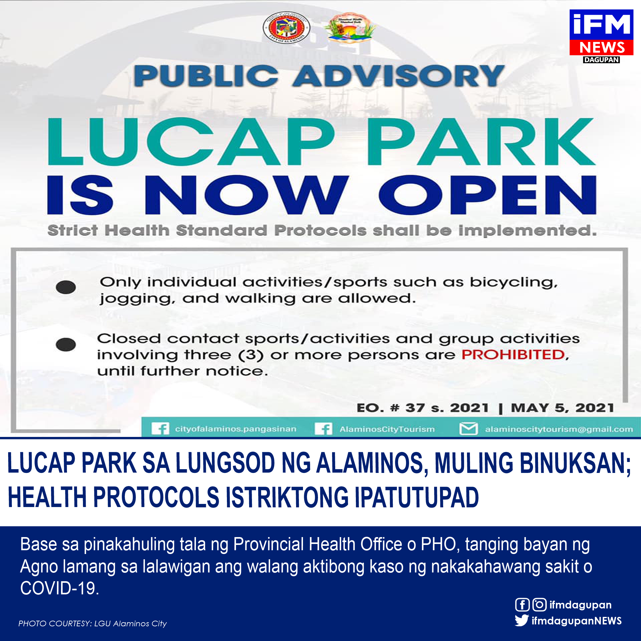 LUCAP PARK SA LUNGSOD NG ALAMINOS, MULING BINUKSAN;